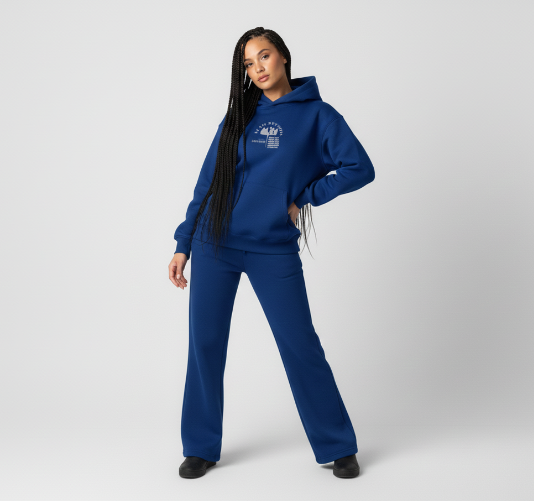 - Détails: Épaules tombantes, capuche doublée sans cordon de serrage, poche kangourou avant